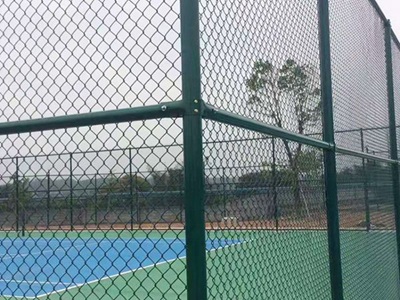 球场围网高度常见3.5-4米,多使用勾花网作为围栏本身。网片四周加边框,网片和边框通过钢筋和U型卡固定。高度超过2米的护栏,需要做成两层叠加的样式达到球场围栏网的使用要求。体育场护栏的立柱和边框网片通过耳朵连接。球场围栏网的样式、高度、强度、使用年限均能满足足球场、篮球场、排球场等体育场的围网要求。