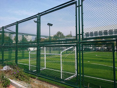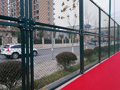 球场围网高度常见3.5-4米,多使用勾花网作为围栏本身。网片四周加边框,网片和边框通过钢筋和U型卡固定。高度超过2米的护栏,需要做成两层叠加的样式达到球场围栏网的使用要求。体育场护栏的立柱和边框网片通过耳朵连接。球场围栏网的样式、高度、强度、使用年限均能满足足球场、篮球场、排球场等体育场的围网要求。