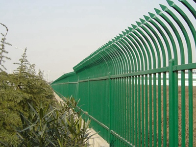 锌钢护栏(D型单向防攀爬)特色: 1、单向防攀爬在技术上采用拼装式整体框架布局,从而方便于施工与安装; 2、单向防攀爬的网片与立柱的衔接部分,采用的是半圆头方颈螺栓,再加上防盗垫圈,这样能够避免护栏被人轻易拆卸; 3、适合于大批量生产,能够很好的与自然相融合。 单向防攀爬用途: 单向防攀爬适用于道路、公园、动物园、别墅、住宅小区等地作为围网使用。