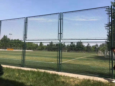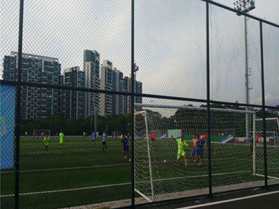 球场围网高度常见3.5-4米,多使用勾花网作为围栏本身。网片四周加边框,网片和边框通过钢筋和U型卡固定。高度超过2米的护栏,需要做成两层叠加的样式达到球场围栏网的使用要求。体育场护栏的立柱和边框网片通过耳朵连接。球场围栏网的样式、高度、强度、使用年限均能满足足球场、篮球场、排球场等体育场的围网要求。